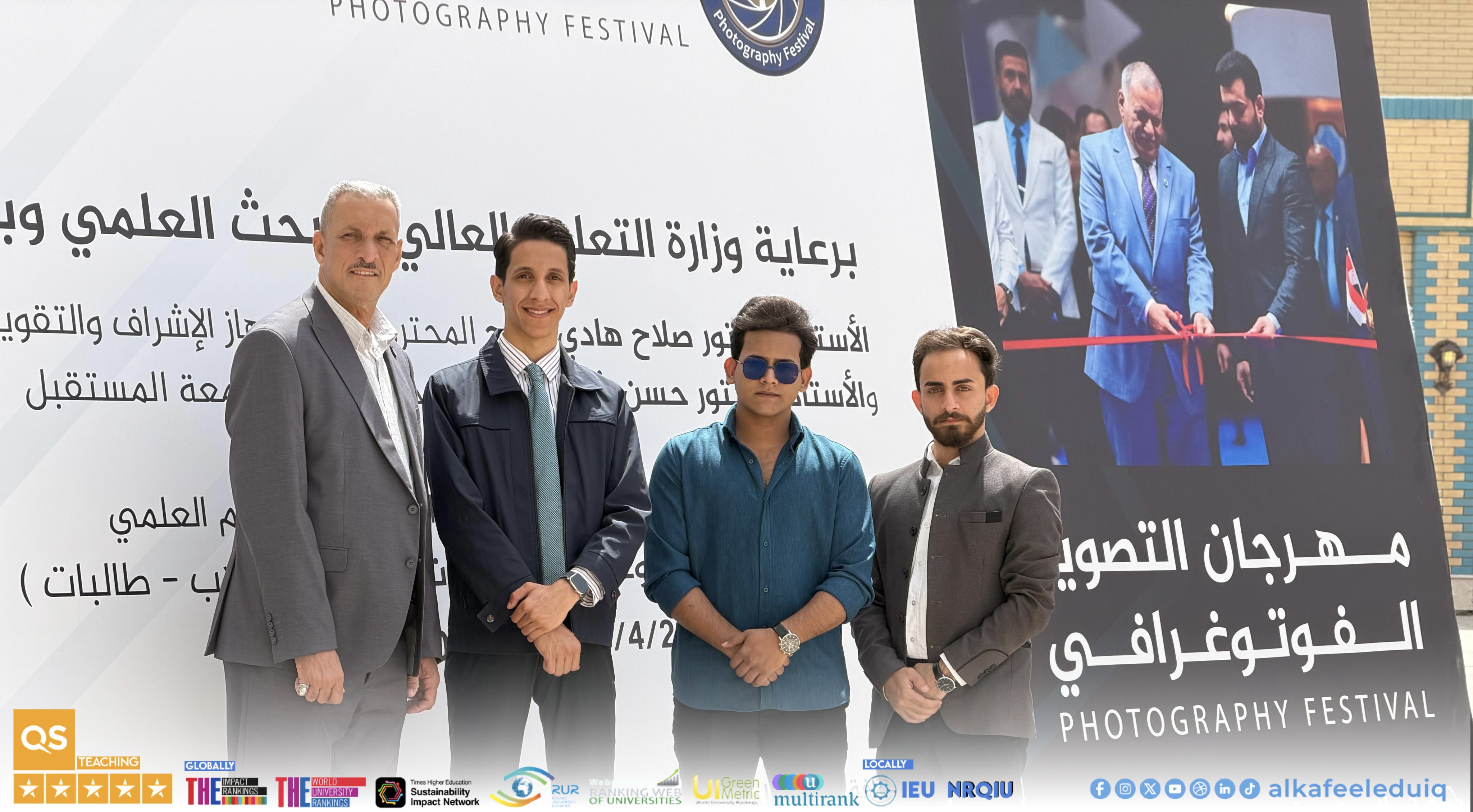 شارك طلبة جامعة الكفيل في مهرجان التصوير الفوتوغرافي الذي تقيمه وزارة التعليم العالي والبحث العلمي / جهاز الإشراف والتقويم العلمي – قسم النشاطات الطلابية وعلى أرض جامعة المستقبل وذلك للفترة من 15 لغاية 19 نيسان 2026 بمشاركة عدد من الجامعات والمؤسسات التعليمية.