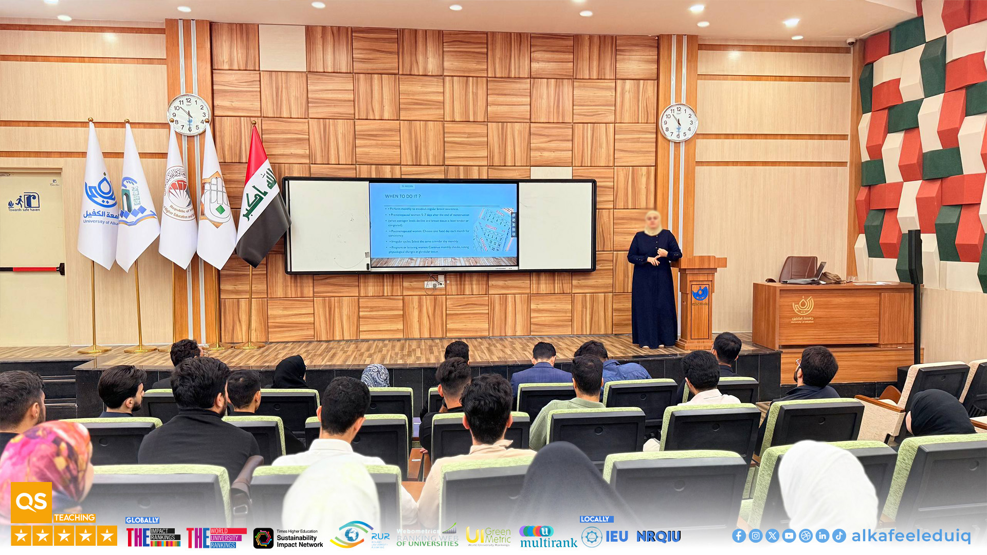 نظّمت كلية الطب جامعة الكفيل محاضرة علمية توعوية بعنوان “خطوات الفحص الذاتي للكشف المبكر عن أمراض الثدي” قدّمها المدرس الدكتور فرقد فلاح حسن الخالدي وذلك يوم الاثنين الموافق 2026/4/20.