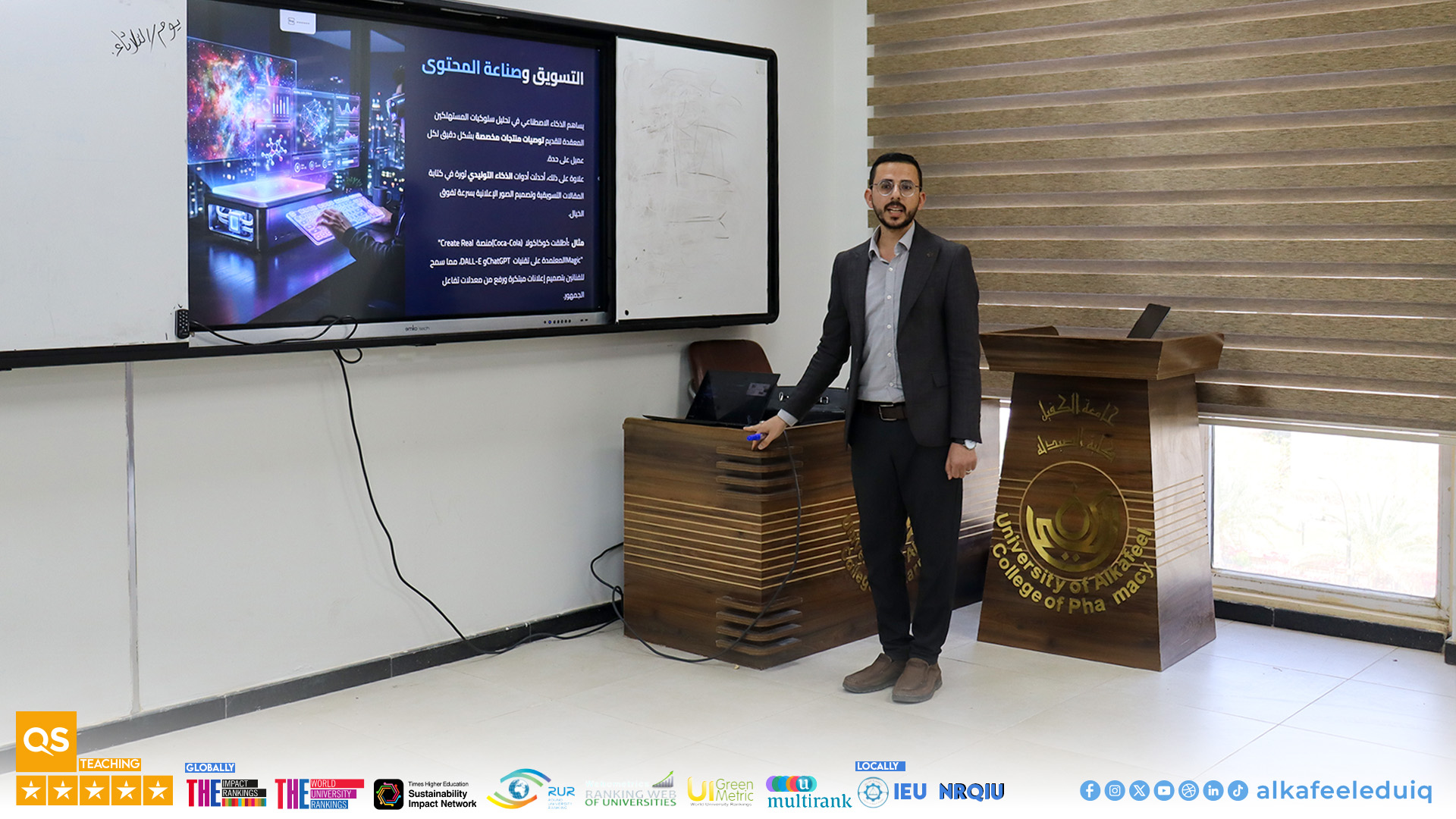 نظّمت وحدة التعليم المستمر في كلية الصيدلة بجامعة الكفيل ورشة عمل بعنوان “الذكاء الاصطناعي في سوق العمل” قدّمها المدرس المساعد حسنين علي حسين وذلك يوم الثلاثاء الموافق 2026/4/21.