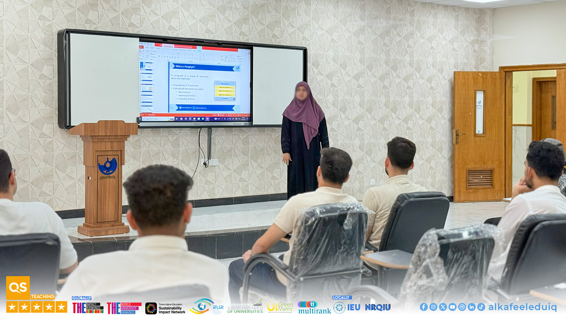 نظّمت كلية الطب في جامعة الكفيل ورشة عمل بعنوان How to Write a Paragraph in English (كيف تكتب الفقرة باللغة الإنجليزية) قدّمتها المدرس الدكتور زكية ناصر درويش وذلك يوم الأحد الموافق 2026/4/26.