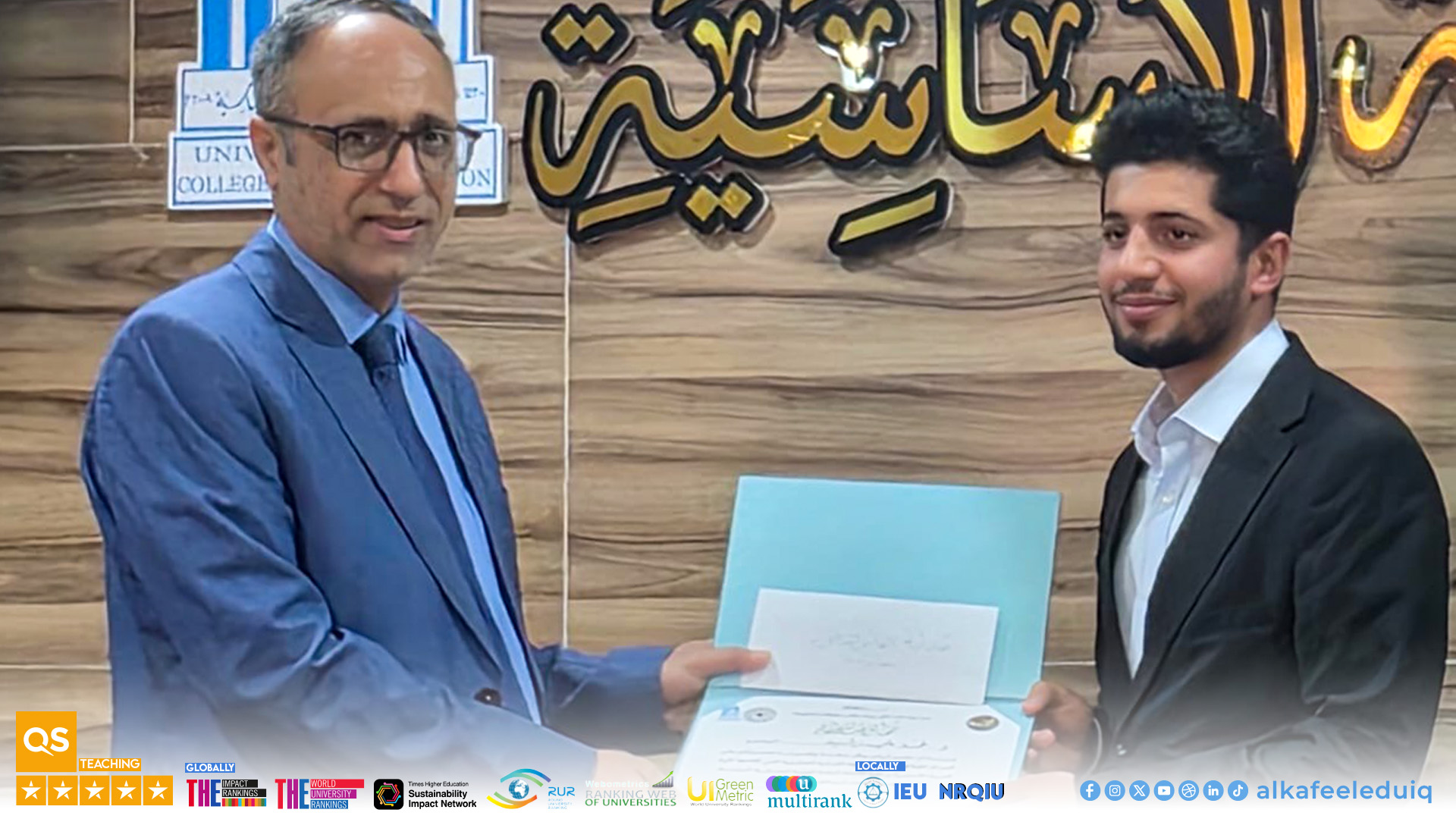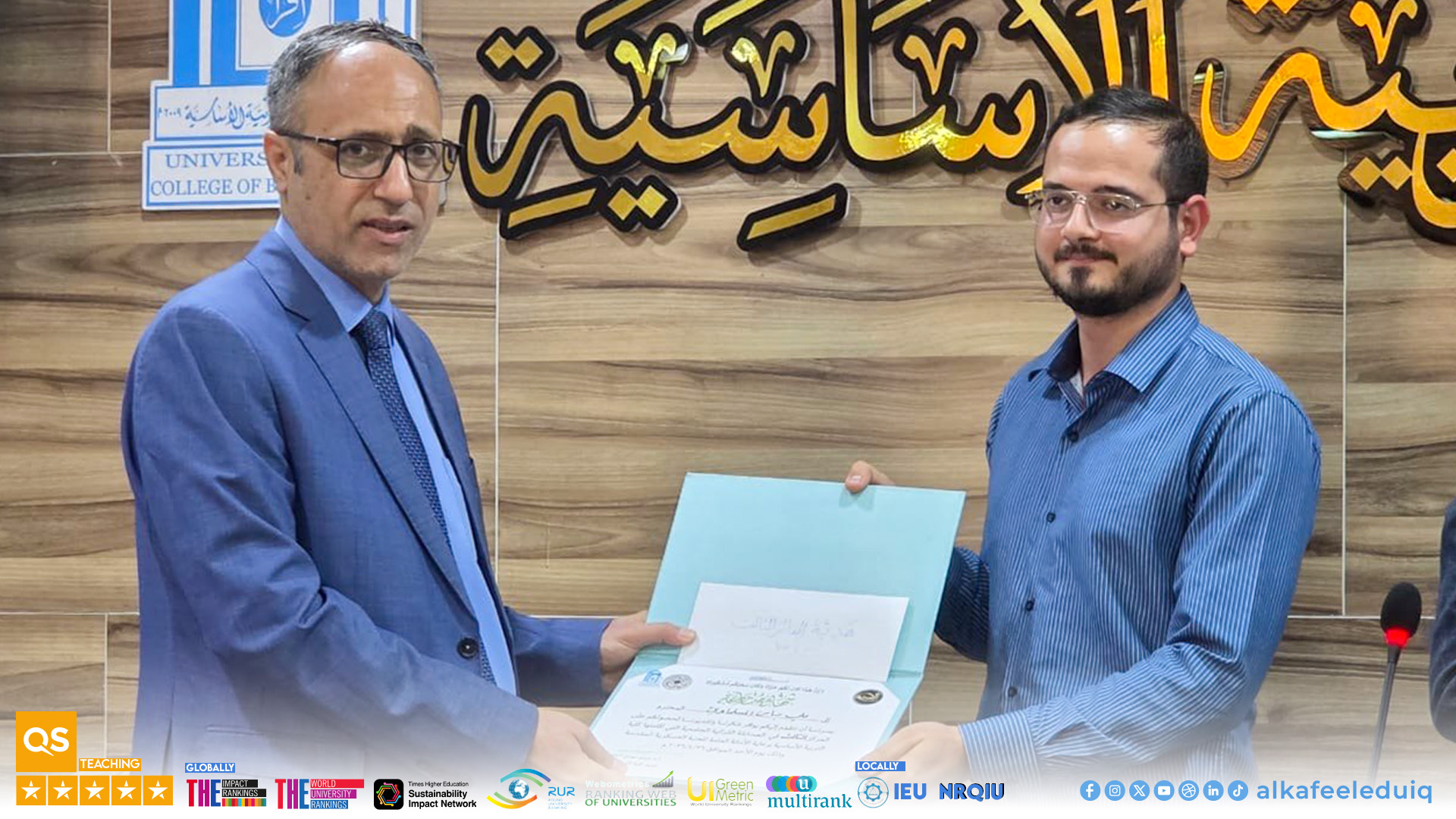 حصول جامعة الكفيل على تقييم 3 نجوم في QS Stars وتحقيق 5 نجمات في اربعة مجالات مختلفة للتقييم ( انقر هنا )