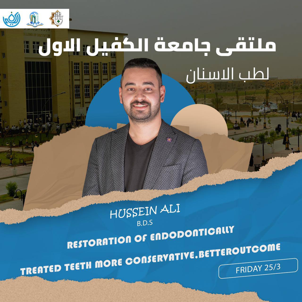 (Restoration of Endodontically Treated Teeth : More Conservative & Better Outcome) طبيب الأسنان الممارس حسين علي الحسيني ومحاضرته الموسومة