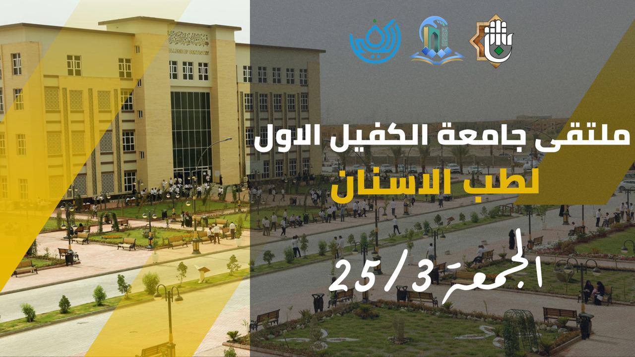 برعاية السيد رئيس جامعة الكفيل الأستاذ الدكتور نورس محمد شهيد الدهان وبإشراف السيد عميد كلية طب الأسنان الأستاذ المساعد الدكتور كريم مكطوف عطيه المحترم تقيم كلية طب الأسنان /جامعة الكفيل ملتقى جامعة الكفيل الأول لطب الاسنان، حيث تناقش فيه مجموعة من القضايا الطبية من خلال محاضرات يلقيها نخبة من خريجي كلية طب الأسنان من جامعة الكفيل.