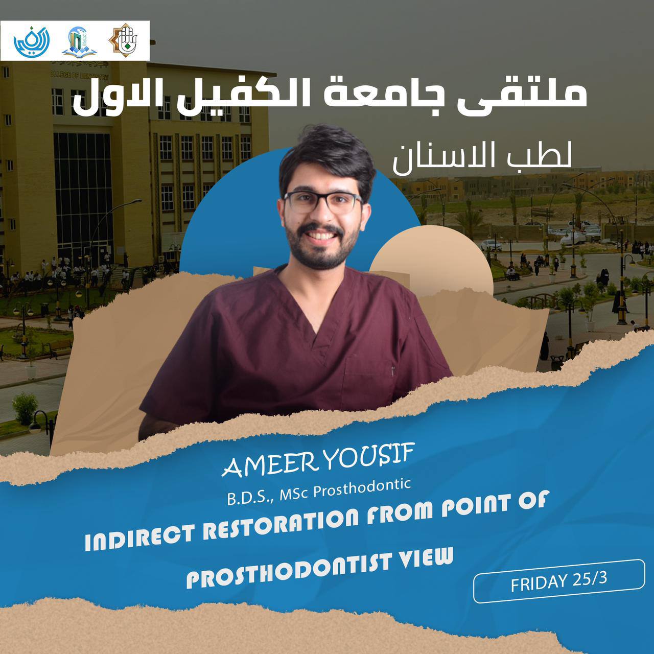 (Indirect Restoration from Prosthodontist Point of View) طبيب الأسنان الاختصاص أمير يوسف عنوز ومحاضرته الموسومة
